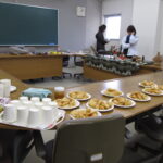 キルギス出身のベガイムさん(四国大学留学生)とODA(政府開発援助)やJICA(国際協力機構)などで海外支援に従事した長田有加里さん(地域外国人コーディネーター)に講演していただきました。最初にベガイムさんが中央アジアのキルギスの歴史、教育、自然、観光、郷土料理、年間行事などについて紹介しました。美しい自然やユルトという遊牧民の住居やカラフルな民族衣装、伝統的な祭りのノウールズ、伝統料理のスモロックやベシュバルマク、ボルソックなどをスライドで紹介しました。最後にリズミカルなキルギスのダンスを披露してくれました。休憩時間に、ベガさんが作ったボルソックを試食したり、長田さん所有のアフリカの民芸品を見学しました。